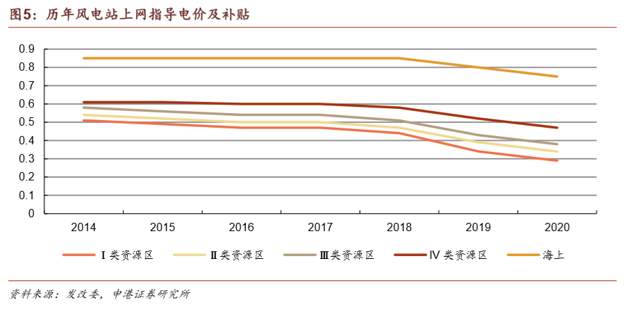 根據(jù)2019年5月發(fā)布的《關(guān)于完善風(fēng)電上網(wǎng)電價政策的通知》規(guī)定,國內(nèi)2018年底前已核準(zhǔn)的海上風(fēng)電項目,2021年底前并網(wǎng)執(zhí)行核準(zhǔn)時的上網(wǎng)電價,2022年及以后并網(wǎng)執(zhí)行并網(wǎng)年份的指導(dǎo)價。